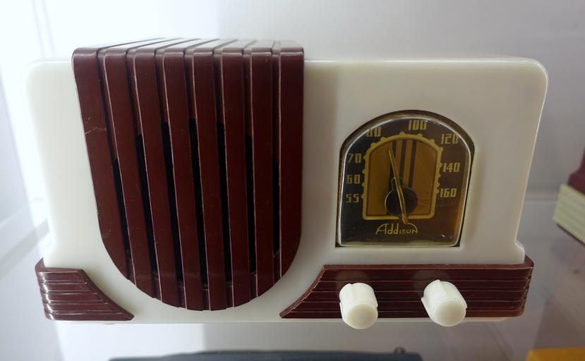 Keywords: Radio, Model 52A, Addison Industries, Toronto, Canada, 1940, Catalin case - Museum für Angewandte Kunst Köln - Cologne, Germany - DSC09451.jpg Industrial design right This protection period has passed and hence this work is now in the public domain 2015-11-28 10 32 42 own Daderot other versions cc-zero Radios in the Museum für Angewandte Kunst Köln Addison radio receivers |