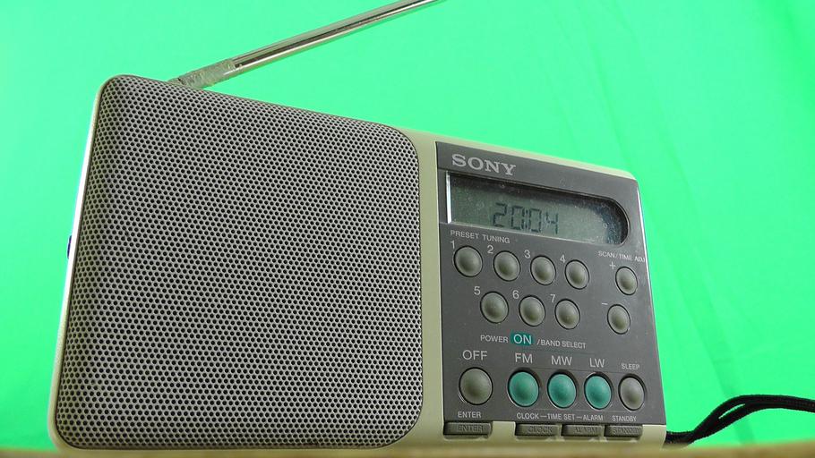 Keywords: radio small green background antenna buttons setting loud speaker sound music program transmit wave emission frequency