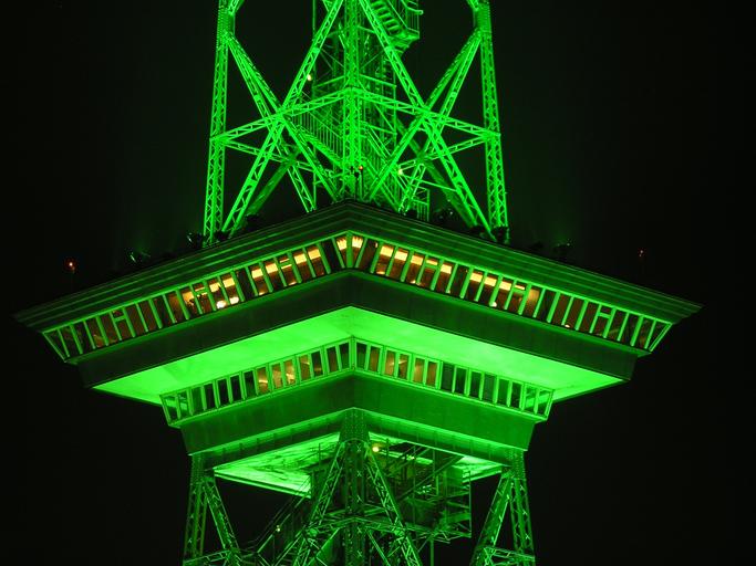 Keywords: radio tower berlin night green illuminated lighting neon green neon light