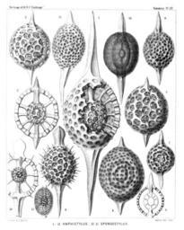 Keywords: Radiolaria (Challenger) Plate 017.jpg follows <table> <tr> <td style text-align center; vertical-align top; colspan 3 >Plate 17 Stylosphærida Druppulida et Spongurida </td> </tr> <tr> <td style font-size 85 ; text-align right; vertical-align top; colspan 3 >Diam </td> </tr> <tr> <td style vertical-align top; >Fig 1 Stylatractus giganteus n sp vel Amphistylus giganteus </td> <td style vertical-align bottom; >×</td> <td style text-align right; vertical-align bottom; >300</td> </tr> <tr> <td style vertical-align top; >Fig 2 Stylatractus sethoporus n sp </td> <td style vertical-align bottom; >×</td> <td style text-align right; vertical-align bottom; >400</td> </tr> <tr> <td style font-size 85 ; padding-left 3em; text-indent -1em; vertical-align top; >The greater part of the cortical shell taken off </td> </tr> <tr> <td style vertical-align top; >Fig 3 Stylatractus sethoporus n sp </td> <td style vertical-align bottom; >×</td> <td style text-align right; vertical-align bottom; >400</td> </tr> <tr> <td style font-size 85 ; padding-left 3em; text-indent -1em; vertical-align top; >The entire cortical shell </td> </tr> <tr> <td style vertical-align top; >Fig 4 Stylatractus compactus n sp </td> <td style vertical-align bottom; >×</td> <td style text-align right; vertical-align bottom; >400</td> </tr> <tr> <td style vertical-align top; >Fig 5 Amphisphæra cronos n sp vel Amphistylus cronos </td> <td style vertical-align bottom; >×</td> <td style text-align right; vertical-align bottom; >400</td> </tr> <tr> <td style vertical-align top; >Fig 6 Stylatractus neptunus n sp vel Amphisphæra neptunus </td> <td style vertical-align bottom; >×</td> <td style text-align right; vertical-align bottom; >300</td> </tr> <tr> <td style vertical-align top; >Fig 7 Amphisphæra pluto n sp </td> <td style vertical-align bottom; >×</td> <td style text-align right; vertical-align bottom; >300</td> </tr> <tr> <td style font-size 85 ; padding-left 3em; text-indent -1em; vertical-align top; >The entire cortical shell </td> </tr> <tr> <td style vertical-align top; >Fig 8 Amphisphæra pluto n sp </td> <td style vertical-align bottom; >×</td> <td style text-align right; vertical-align bottom; >300</td> </tr> <tr> <td style font-size 85 ; padding-left 3em; text-indent -1em; vertical-align top; >Meridional section through the three concentric shells </td> </tr> <tr> <td style vertical-align top; >Fig 9 Xiphatractus glyptodon n sp </td> <td style vertical-align bottom; >×</td> <td style text-align right; vertical-align bottom; >400</td> </tr> <tr> <td style font-size 85 ; padding-left 3em; text-indent -1em; vertical-align top; >The entire cortical shell </td> </tr> <tr> <td style vertical-align top; >Fig 10 Xiphatractus glyptodon n sp </td> <td style vertical-align bottom; >×</td> <td style text-align right; vertical-align bottom; >400</td> </tr> <tr> <td style font-size 85 ; padding-left 3em; text-indent -1em; vertical-align top; >The greater part of the cortical shell taken off </td> </tr> <tr> <td style vertical-align top; >Fig 11 Xiphatractus armadillo n sp </td> <td style vertical-align bottom; >×</td> <td style text-align right; vertical-align bottom; >400</td> </tr> <tr> <td style vertical-align top; >Fig 12 Spongoxiphus prunococcus n sp </td> <td style vertical-align bottom; >×</td> <td style text-align right; vertical-align bottom; >300</td> </tr> <tr> <td style font-size 85 ; padding-left 3em; text-indent -1em; vertical-align top; >The spongy cortical shell </td> </tr> <tr> <td style vertical-align top; >Fig 13 Spongoxiphus prunococcus n sp </td> <td style vertical-align bottom; >×</td> <td style text-align right; vertical-align bottom; >600</td> </tr> <tr> <td style font-size 85 ; padding-left 3em; text-indent -1em; vertical-align top; >The two concentric latticed medullary shells </td> </tr> </table> https //archive org/details/reportonradiolar00haecrich 1887 Ernst Haeckel 1834-1919 ; engravings by Adolf Giltsch 1852-1911 PD-old-auto-1923 1919 Report on the Radiolaria |