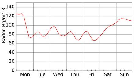 Keywords: Radon-indoor-one-week.svg Radonkonzentration in einem Labor über eine Woche Gemessen mit einem AlphaGuard Der dargestellte Zeitraum 2011-11-07 00 00 00 bis 2011-11-14 00 00 00 Die Rohdaten wurden alle 10 min erhoben und für die Darstellung geglättet own 2011-11-18 own Cc-zero Gnuplot source <source lang gnuplot > set datafile separator set xdata time set timefmt s set xtics format a set grid set xtics +86400 set ylabel Radon Bq/m 3 set title Radonkonzentration in Innenraeumen - 1 Woche plot radon daten u 1 2 w l smooth bezier notitle </source> Radon Gnuplot diagrams |