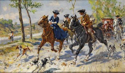 Keywords: Raffaello Sorbi Der Ausritt 1927.jpg Der Ausritt oil cardboard 16 x 27 cm Raffaello Sorbi // 1927 signature/date lower right http //www hampel-auctions com/ Hampel Auctions 1927 Creator Raffaello Sorbi PD-old-70 Images from Hampel Auctions Raffaello Sorbi 1927 paintings Rococo revival paintings Riding in art 18th-century way of life in painting |