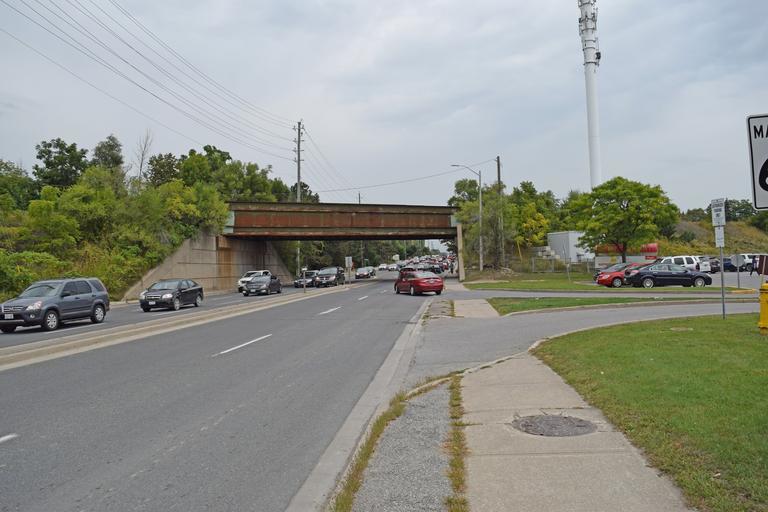 Keywords: rail bridge street urban bridge rail road travel transportation metal old outdoor sky traffic clouds steel