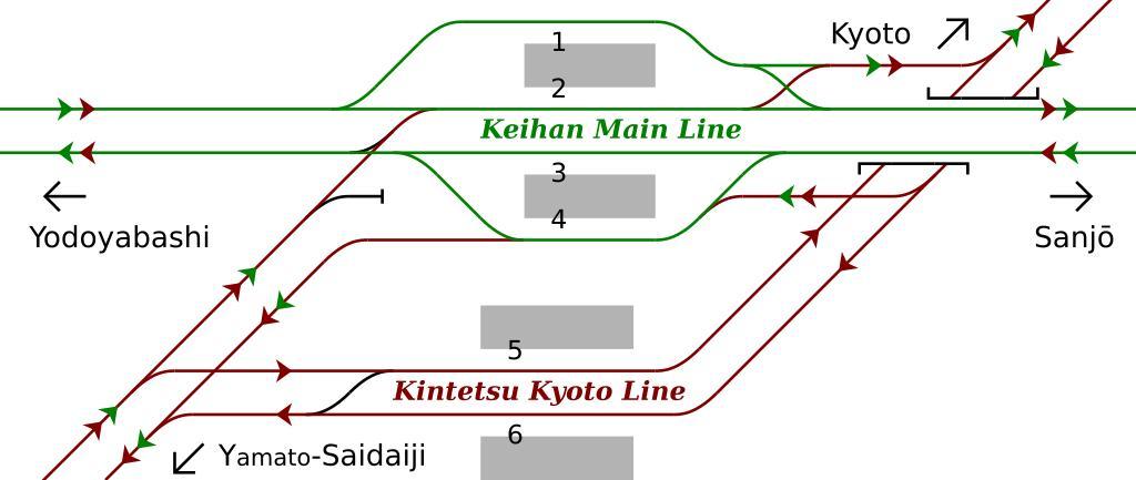 Keywords: Rail Track diagram of Tambabashi Station 1967 03 en.svg Tambabashi Station in Fushimi-ku Kyoto Japan 1967-03 <br /> Railway track Line name colored line <span style color 008000 > green </span> Keihan Line route <span style color 800000 > maroon </span> Kintetsu Kyoto Line route Station n Platform Number Reference material Kintetsu Corporation 100NEN NO AYUMI The corporation history of 100 years Japanese Page 292 figure 6-6 京都市伏見区にある丹波橋駅 京阪と近鉄の共同使用駅当時の鉄道配線図(1967年 昭和42年 3 ) 乗り入れ路線名 <span style color 008000 > </span> 京阪 線 <span style color 800000 > </span> 近鉄京都線 駅 n プラットホーム番号 参 文献: 近畿日 鉄道編集 近畿日 鉄道 100年のあゆみ - 1910~2010 292頁図6-6 丹波橋駅の配線変更(昭和42 43年) 2010年 凡例は駅配線図テンプレートを参照 Plan de voies gare de Tambabashi historique mars 1967 Réseau Keihan vert et Kintetsu Corporation Bordeaux Fushimi-ku Kyoto Japon Created with Text Editor Tawashi2006 created from icons in Category Rail_tracks_map_template 2013-05-19 Tawashi2006 with http //kiritachinoboru tripod com/pdv2svg_en html pdv2svg Tawashi2006 300pxja validSVG translation possible Rail track diagrams of Kintetsu Corporation train stations Rail track diagrams of Keihan Electric Railway train stations |