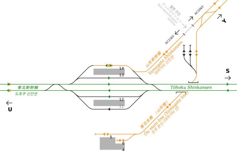 | Keywords: Rail Tracks map JR-E Fukushima Station standard.svg JR East Fukushima Station Standard gauge tracks in Fukushima Fukushima Japan Legend n platform number Route information Y Yonezawa Yamagata Shinjō bound U Utsunomiya Ōmiya Ueno Tōkyō bound S Sendai Morioka Hachinohe Shin-Aomori bound Reference material Keisuke SODA Special issue - Shinzai Chokutsū Mini-shinkansen KOYUSHA CO LTD Japan Railfan Magazine Tetsudō Fan Japanese Magazine Vol 47-9 No 557 2007-9 Figure 2 - Page 37 http //www jreast co jp/estation/stations/1352 html EAST JAPAN RAILWAY official homepage Station Information retrieval - Fukushima Station Japanese 福島 福島市にあるJR 日 福島駅 構内配線略図(標準軌分) 参 文献: 祖田 介 特集:新 直 ・ミニ新幹線 ~山形・秋田新幹線の配線を探る~ 鉄道ファン 第47巻 第9号 ( 巻第557号)2007年9 号 交友社 2007年 37頁 図2 福島駅の配線略図 (主要部分) http //www jreast co jp/estation/stations/1352 html JR 日 公式ホームページ 駅情報 索 - 福島駅 - 駅構内図 (のりば番号) 凡例は駅配線図テンプレートを参照 Plan de voies de Gare de Fukushima Fukushima Fukushima Japon Created with Text Editor Tawashi2006 created from icons in Category Rail_tracks_map_template 2011-09-13 Tawashi2006 with http //kiritachinoboru tripod com/pdv2svg_en html pdv2svg Tawashi2006 validSVG Fukushima Station Fukushima Rail track diagrams of JR East train stations |