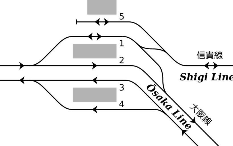 Keywords: Rail Tracks map Kintetsu Kawachi-Yamamoto Station.svg Kintetsu Kawachi-Yamamoto Station Yao Osaka Pref Japan <br /> Reference material Ryozo KAWASHIMA ZUSETSU NIHON NO TETSUDOH Tokaido Line ZENSEN ZEN-EKI ZEN-HAISEN No 9 Nara Higashi-Osaka Japanese ISBN 978-406-270019-1 19p Kodansha 2009 大阪 八尾市にある近鉄河内山 駅 構内配線略図<br /> 参 文献: 島令三 図説 日 の鉄道 海道ライン 全線・全駅・全配線 第9巻 奈良・ 大阪 ISBN 978-406-270019-1 講談社 2009 19頁<br /> 凡例は駅配線図テンプレートを参照 Plan de voies Tawashi2006 created from icons in Category Rail_tracks_map_template 2009-12-13 Tawashi2006 with http //kiritachinoboru tripod com/pdv2svg_en html pdv2svg Rail track diagrams of Kintetsu Corporation train stations Kawachi-Yamamoto Station |