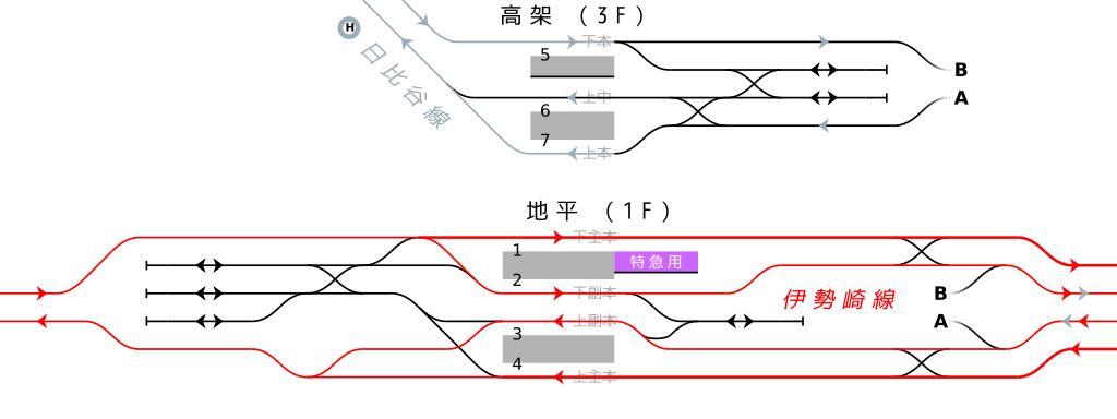 Keywords: Rail Tracks map Tobu and Metro Kita-Senju Station ja.svg Tobu Railway Tokyo Metro Kita-Senju Station in Adachi Tokyo Japan Japanese version <br /> Reference material <br /> DENKISHA KENKYUKAI THE RAILWAY PICTORIAL Tetsudō Pictorial Japanese magazine Vol 58-1 No 799 Extra edition - 武鉄道 Tobu Railway insert page at end 2008-01 <br /> Naoto Ikeda Tobu Railway Quadruple track and Express train operation for Isesaki Line Tobu Railway DENKISHA KENKYUKAI THE RAILWAY PICTORIAL Vol 51-12 No 710 2001-12 page24 figure-3 <br /> http //www tobu co jp/station/inside_map/1204 html Tobu Railway official homepage station map - Kita-Senju Station Japanese <br /> http //www tokyometro jp/station/kita-senju/yardmap/index html Tokyo Metro official homepage station map - Kita-Senju Station Japanese 京都足立区にある 武鉄道伊勢崎線・ 京メトロ日比谷線 北千住駅の鉄道配線略図(日 語版) <br /> 参 文献:<br /> 電気車研究会 武鉄道線路配線略図 鉄道ピクトリアル 第58巻第1号 巻第799号 特集 武鉄道 2008年1 臨時増刊号 巻 折込 <br /> 池田直人( 武鉄道) 武鉄道-伊勢崎線の複 線と 行運転 電気車研究会 鉄道ピクトリアル 第51巻12号( 巻第710号) 2001年12 号 24頁 図-3 浅草- 武動物公 間配線略図 <br /> http //www tobu co jp/station/inside_map/1204 html 武鉄道公式ホームページ 北千住駅構内マップ<br /> http //www tokyometro jp/station/kita-senju/yardmap/index html 京メトロ公式ホームページ 北千住駅構内図<br /> 凡例は駅配線図テンプレートを参照 Plan de voies gare de Kita-Senju ligne Isesaki Réseau Tobu et ligne Hibiya Réseau Tōkyō Métro Adachi Tōkyō Japon Created with Text Editor Tawashi2006 created from icons in Category Rail_tracks_map_template 2011-02-13 Tawashi2006 with http //kiritachinoboru tripod com/pdv2svg_en html pdv2svg Tawashi2006 300px en validSVG translation possible Rail track diagrams of Tokyo Metro train stations Rail track diagrams of Tobu Railway train stations Kita-Senju Station |