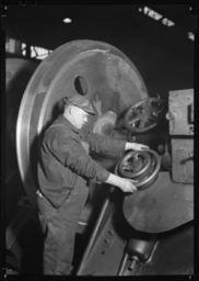 | Keywords: nara:arcid=518716 u.s. national archives usnationalarchives lewis hine lewishine blackandwhite monochrome black and white Original Caption: Eddystone, Pennsylvania - Railroad parts. Baldwin Locomotive Works. Machinist machining wheel to fit driving pin on above wheels (80 inches in diameter) on newest type of locomotive, March 1937 U.S. National Archives’ Local Identifier: 69-RP-529 Photographer: Hine, Lewis Subjects: The New Deal Tennessee Valley Authority Works Progress Administration Work Portraits The Great Depression Persistent URL: research.archives.gov/description/518716 Repository: Still Picture Records Section, Special Media Archives Services Division (NWCS-S), National Archives at College Park, 8601 Adelphi Road, College Park, MD, 20740-6001. For information about ordering reproductions of photographs held by the Still Picture Unit, visit: www.archives.gov/research/order/still-pictures.html Reproductions may be ordered via an independent vendor. NARA maintains a list of vendors at www.archives.gov/research/order/vendors-photos-maps-dc.html Access Restrictions: Unrestricted Use Restrictions: Unrestricted Original Caption: Eddystone, Pennsylvania - Railroad parts. Baldwin Locomotive Works. Machinist machining wheel to fit driving pin on above wheels (80 inches in diameter) on newest type of locomotive, March 1937 U.S. National Archives’ Local Identifier: 69-RP-529 Photographer: Hine, Lewis Subjects: The New Deal Tennessee Valley Authority Works Progress Administration Work Portraits The Great Depression Persistent URL: research.archives.gov/description/518716 Repository: Still Picture Records Section, Special Media Archives Services Division (NWCS-S), National Archives at College Park, 8601 Adelphi Road, College Park, MD, 20740-6001. For information about ordering reproductions of photographs held by the Still Picture Unit, visit: www.archives.gov/research/order/still-pictures.html Reproductions may be ordered via an independent vendor. NARA maintains a list of vendors at www.archives.gov/research/order/vendors-photos-maps-dc.html Access Restrictions: Unrestricted Use Restrictions: Unrestricted |
