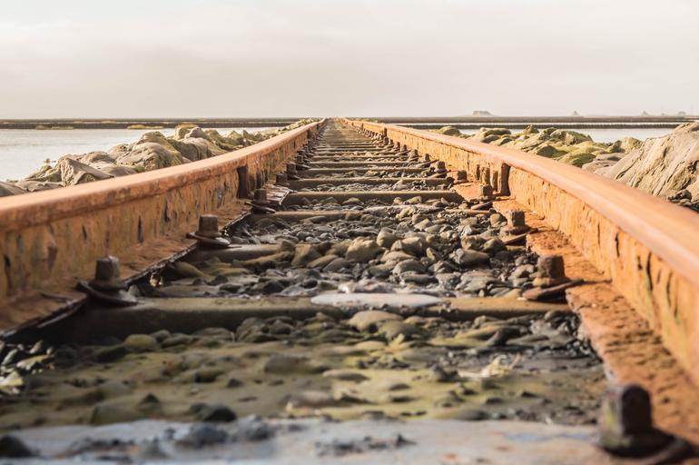 Keywords: railway beach leave old rusty out of date blank wide lonely
