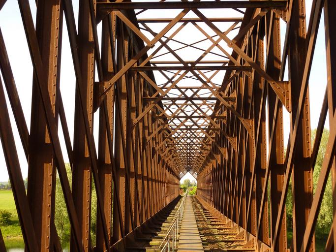 Keywords: railway bridge rust bridge train railway line germany transport rails trains track tracks train track sleepers leave countryside