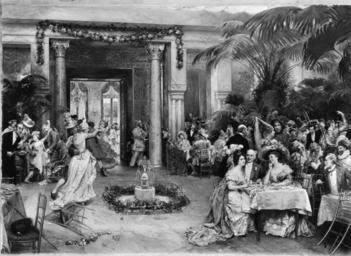 Keywords: Raimundo de Madrazo y Garreta, Masquerade Ball at the Ritz Hotel, Paris, 1909 BW.jpg Artwork 1909 Oil on canvas 35 x 47 in 88 9 x 119 4 cm Institution Metropolitan Museum of Art object history exhibition history credit line Bequest of Emma T Gary 1934 436927 Inscription Signed and dated lower right R Madrazo / 1909 accession number 37 20 3 PD-100 Images of Paris from the Metropolitan Museum of Art Raimundo Madrazo Hôtel Ritz Paris Urban life paintings of Paris 1909 events in Paris 1909 paintings Paintings in the Metropolitan Museum of Art Masquerade in art |