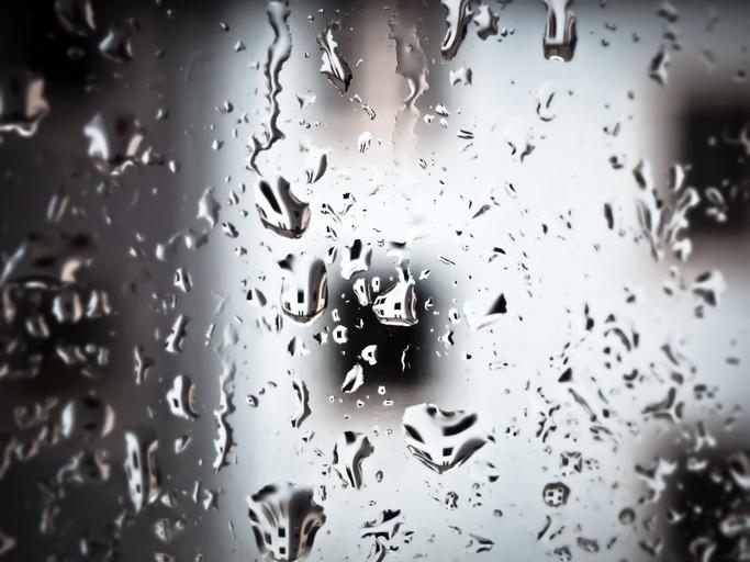 Keywords: rain raindrop drop of water macro beaded disc window blurry window panes run off