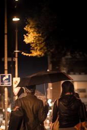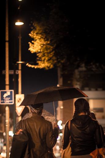 Keywords: rain umbrella girls weather wet water street city urban evening night pouring walking netherlands students