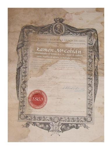Keywords: Ramón Mª Cobián 1863.JPG Ramón Mª Cobián Contador de Rentas de S M Caballero de la Orden de Carlos III desde el año 1863 Lugar da Ribeira Santa Mariña de Ribeira La Estrada Pontevedra Galicia Spain own 5 Aug 2003 From the Original 1863 Luís Enrique Márquez Fonteclara Antigua Casona de Cobián para ver originales http //www geocities com/ribeira_santamarina/municipalidad_de_la_estrada html 1126553329359 A Estrada |