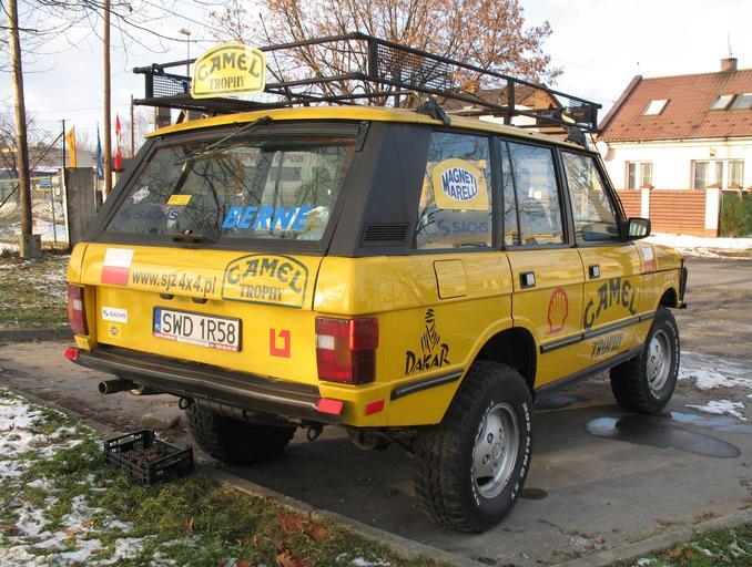 | Keywords: Range Rover Camel Trophy in Kraków (3).jpg en Yellow Range Rover Mk1 SUV Camel Trophy in Kraków Poland pl Żółty Range Rover pierwszej generacji w Krakowie Uczestniczył w Camel Trophy own Lukas 3z 2011-01-02 <gallery>File Range Rover Camel Trophy in Kraków 1 jpg File Range Rover Camel Trophy in Kraków 2 jpg File Range Rover Camel Trophy in Kraków 4 jpg</gallery> Cc-zero Land Rover Range Rover 1st generation Automobiles facing right Automobiles with advertisement in Kraków Camel Trophy Yellow SUVs in Kraków License plates of Poland 2006 - present |