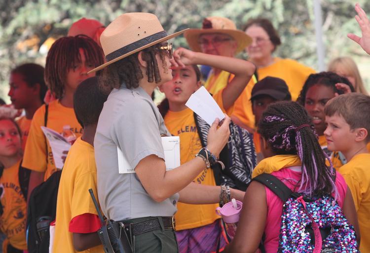 | Keywords: every kid in a park everykidinapark findyourpark juan bautista de anza national historic trail juanbautistadeanzanationalhistorictrail santa monica mountains national recreation area santamonicamountainsnationalrecreationarea los angeles losangeles san fernando valley sanfernandovalley anthony c. beilenson park anthonycbeilensonpark department of interior departmentofinterior outdoor Mayor Eric Garcetti, County Supervisor Sheila Kuehl, and members of the City Council helped kick of the L.A. launch of the Every Kid in a Park program on October 15, 2015 near Santa Monica Mountains National Recreation Area. Nearly 500 local 4th-graders participated in educational activities and were rewarded with a Junior Ranger badge and a free annual pass to all federal lands. Photo credit: National Park Service. Mayor Eric Garcetti, County Supervisor Sheila Kuehl, and members of the City Council helped kick of the L.A. launch of the Every Kid in a Park program on October 15, 2015 near Santa Monica Mountains National Recreation Area. Nearly 500 local 4th-graders participated in educational activities and were rewarded with a Junior Ranger badge and a free annual pass to all federal lands. Photo credit: National Park Service. |