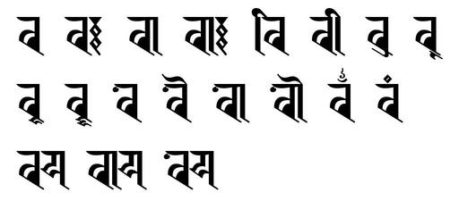 Keywords: Ranjana ba vowels.svg en Appearance of vowel diacritics in the Rañjanā script when combined with the letter ba Based on the Bishowson2 Ranjana Lipi font 2016-11-14 own Tasnu Arakun other versions cc-zero Ranjana script