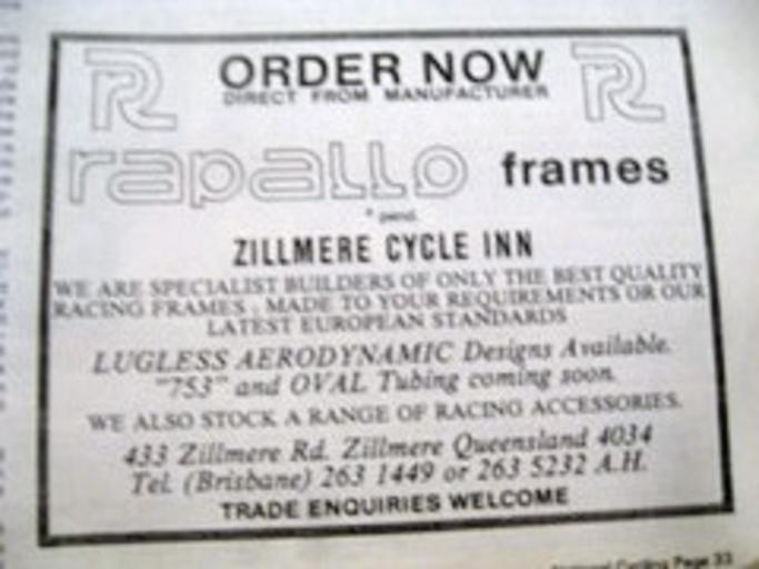Keywords: Rapallo Bicycle Addvertisement.jpg en Photo of original Rapallo frame builders advertisement 1970's own Beaumontmajor 2010-01-01 Free Bicycles in Australia Bicycle frames