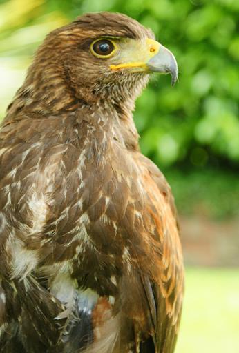 Keywords: raptor bird nature brown avian prey portrait feathers wings hawk sharp watching winged captivity wildlife beak