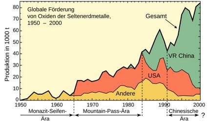 Keywords: Rareearth production-de.svg de Globale Produktion von Seltenen Erdmetallen 1 kt 106 kg en Global rare earth element production from 1950 through 2000 colored to indicate source 1 kt 106 kg Rareearth_production svg Rareearth_production svg BMacZero 2010-04-29 this file Furfur BMacZero GFDL cc-by-sa-4 0 Other versions <gallery> File Rare-earths gif <center> en GIF </center> File Rareearth_production svg <center> en SVG </center> File Rareearth production-fr svg <center> fr SVG </center> </gallery> Other fields A + Area charts Rare earth elements SVG charts in German |