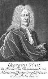 | Keywords: Rast Georg.jpg en Georg Rast 1651-1729 Physician from Germany de Georg Rast 1651-1729 deutscher Mediziner Deutsche Acta Eruditorum 1730 150 T ungez Bl vor S 381 Martin Bernigeroth 1731 http //idrz18 adw-goettingen gwdg de/portraets_detail/rast html PD-old-100 Physicians from Germany 1651 births 1729 deaths |