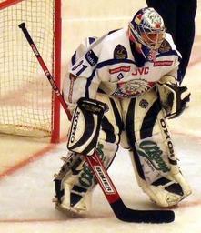 Keywords: RastislavStanaLHC.jpg Ice hockey goaltender Rastislav Staňa of Linköpings HC prepared for faceoff in E ON Arena Timrå Sweden Self-made work Fujifilm FinePix F30 camera Adjusted for composition and color balance using GIMP 2007-02-22 Hans Lindqvist PD-Sweden-self Rastislav Staňa Face-off ice hockey |