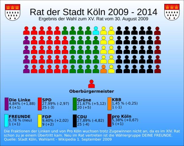 Keywords: RatKöln2009.svg Cologne in Northrhine-Westfalia as elected on the 30th August 2009 Köln in Nordrhein-Westfalen wie er am 30 August 2009 gewählt wurde own Vinom 2009-09-01 thumb Vorgänger Zusammensetzung des XIV Rates gegen Ende der Amtsperiode Rat der Stadt Köln Local elections in Cologne 2009 |