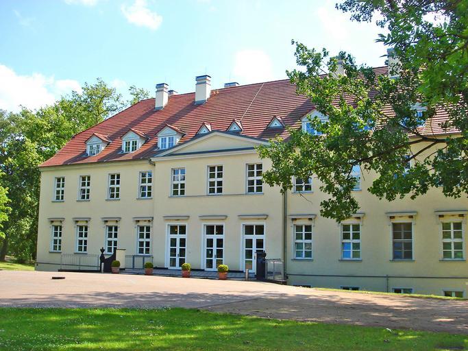 Keywords: Rattey Schloss Front.JPG Schloss Rattey in Schönbeck nahe Neubrandenburg Landkreis Mecklenburgische Seenplatte Mecklenburg-Vorpommern Das klassizistische Schloss von 1806 ist berühmt für die Weingüter ringsum Geschichtl Abriss Im Jahr 1690 verlieh Gustav Adolf Herzog von Mecklenburg-Güstrow den Besitz an Georg-Henning von Oertzen Die Familie konnte den Besitz aber erst ab 1775 nach dem Erlöschen der Familie Manteuffel im männlichen Stamm für sich nutzen In diesem Jahr übernahm Victor-Wilhelm von Oertzen den Besitz Sein Sohn Hans-Christoph von Oertzen ließ 1806 das Herrenhaus einen zweigeschossigen Putzbau im klassizistischen Stil auf den Fundamenten eines älteren Gebäudes errichten Das Herrenhaus Rattey wurde zum Ende des 2 Weltkrieges durch die Familie von Oertzen an die Gemeinde verkauft Die Familie verließ Mecklenburg nach dem gescheiterten Hitler-Attentat an dem Hans-Ulrich von Oertzen maßgeblich beteiligt war Nach dem Krieg zogen vorerst Flüchtlinge in das Gebäude ein später wurden die Räume auch durch einen Kindergarten die Post und die LPG-Küche genutzt Im Jahr 1996 erwarben zwei Bremer Unternehmer das Herrenhaus und renovierten es von Grund auf Seit 1998 wird hier ein Hotel geführt Bekannt wurde Rattey auch als nördlichstes Weinanbaugebiet Deutschlands Im Park stehen 13 Eichen deren Alter auf mindestens 700 Jahre geschätzt wird s gutshaeuser de own 2009-06-10 Horst-schlaemma Own work all rights released Public domain Schloss Rattey Files by User Horst-schlaemma |