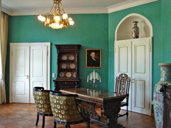 Keywords: Rattey Schloss innen Salon.JPG Schloss Rattey in Schönbeck nahe Neubrandenburg Landkreis Mecklenburgische Seenplatte Mecklenburg-Vorpommern Das klassizistische Schloss von 1806 ist berühmt für die Weingüter ringsum Geschichtl Abriss Im Jahr 1690 verlieh Gustav Adolf Herzog von Mecklenburg-Güstrow den Besitz an Georg-Henning von Oertzen Die Familie konnte den Besitz aber erst ab 1775 nach dem Erlöschen der Familie Manteuffel im männlichen Stamm für sich nutzen In diesem Jahr übernahm Victor-Wilhelm von Oertzen den Besitz Sein Sohn Hans-Christoph von Oertzen ließ 1806 das Herrenhaus einen zweigeschossigen Putzbau im klassizistischen Stil auf den Fundamenten eines älteren Gebäudes errichten Das Herrenhaus Rattey wurde zum Ende des 2 Weltkrieges durch die Familie von Oertzen an die Gemeinde verkauft Die Familie verließ Mecklenburg nach dem gescheiterten Hitler-Attentat an dem Hans-Ulrich von Oertzen maßgeblich beteiligt war Nach dem Krieg zogen vorerst Flüchtlinge in das Gebäude ein später wurden die Räume auch durch einen Kindergarten die Post und die LPG-Küche genutzt Im Jahr 1996 erwarben zwei Bremer Unternehmer das Herrenhaus und renovierten es von Grund auf Seit 1998 wird hier ein Hotel geführt Bekannt wurde Rattey auch als nördlichstes Weinanbaugebiet Deutschlands Im Park stehen 13 Eichen deren Alter auf mindestens 700 Jahre geschätzt wird s gutshaeuser de own 2009-06-10 Horst-schlaemma Own work all rights released Public domain Schloss Rattey Files by User Horst-schlaemma |