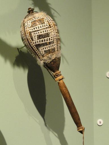 Keywords: Rattle, Desana people, gourd with macaw feather - South American collection - Peabody Museum, Harvard University - DSC05687.JPG Rattle Desana people gourd with macaw feather Exhibit from the South American Collection Peabody Museum Harvard University Cambridge Massachusetts USA Photography was permitted without restriction; exhibit is old enough so that it is in the public domain Daderot 2012-03-18 14 29 49 Daderot cc0 cc0 South American Collection Peabody Museum Harvard University Desana people |