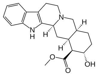 Keywords: Rauwolscine.svg validSVG Skeletal formula of rauwolscine α-yohimbine Created using http //www acdlabs com/download/chemsk html ACD/ChemSketch 10 0 http //www inkscape org Inkscape and http //www vim org vim own Fvasconcellos 2008-07-16 Indole alkaloids |