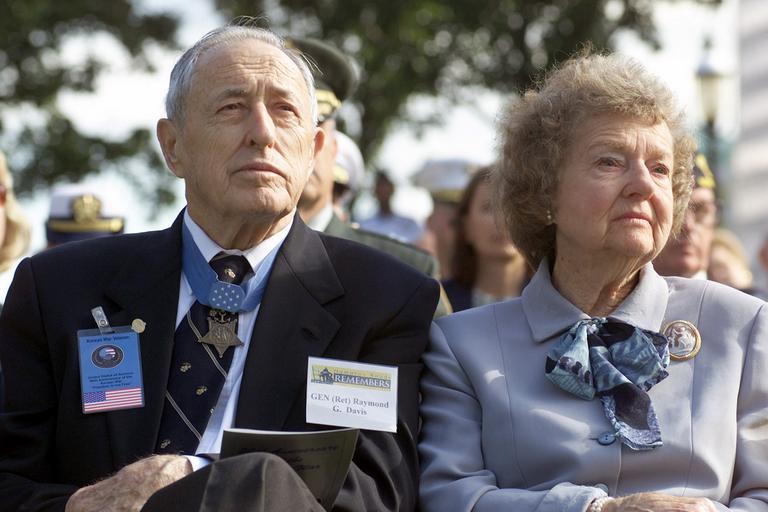 | Keywords: Raymond G Davis and wife 2000.JPEG en Medal of Honor Recipient US Marine Corps USMC General GEN Retired Raymond G Davis and Mrs Davis attend the Memorial Service held at Town Point Park Norfolk Virginia VA during the Korean War 50th Anniversary Commemoration Ceremony 000917-N-1110A-503 Navy http //defenseimagery mil/imagery html a search s davis 20medal 20of 20honor chk 6cfe0 p 5 guid 704c7069c2482cd1c47cf06cad1022fd69d61796 PH1 Tina M Ackerman United States Navy 2000-09-17 PD-USGov-Military-Navy Raymond G Davis |
