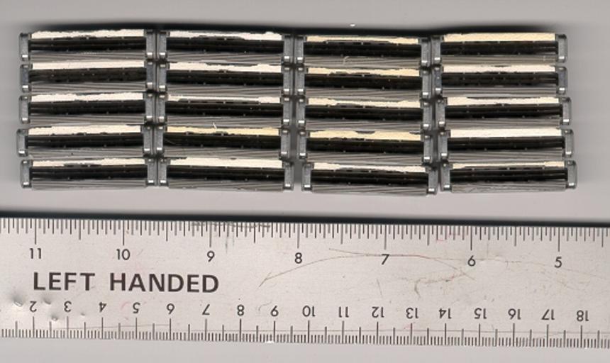 Keywords: Razors-100.jpg en Twenty Gillette Sensor-Excel razor blades that have been placed under a pyramid and then used to shave a male face 2003-2010 These were scanned life-size own Dave of Maryland 2011-02-26 Cc-zero Gillette