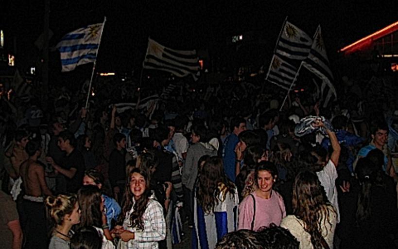 Keywords: Reactions to Uruguay win over Ghana in World Cup quarterfinals in Montevideo 2010-07-02 2.jpg En Uruguay corrió el rumor de que al ser consultado sobre el desempeño de la selección celeste en el Mundial preguntó con ironía ¿Uruguay sigue en el Mundial 2010-07-02 http //www1 voanews com/spanish/news/specialreports/Federica/Burlas-entre-hermanos-97821409 html Federica Narancio PD-USGov-VOA Files by User BrokenSphere Supporters during FIFA World Cup 2010 in Uruguay |