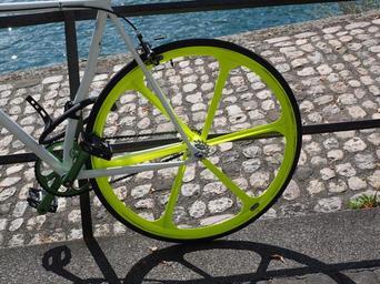 Keywords: rear wheel mature rim spokes circuit road bike wheel bike sport bike stylish design cycling green chic