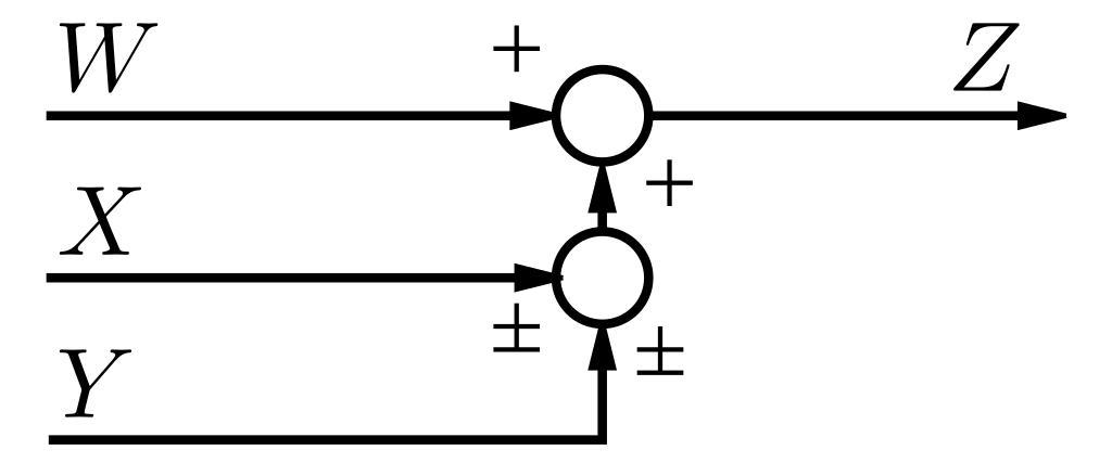 | Keywords: Rearranging Summing Junctions 3.svg A block diagram in the control theory sense showing a combination of summing junctions implementing <math>Z W \pm Y \pm X</math> 2008-01-27 Own Work Inkscape Inductiveload See the Control theory block diagrams Control theory block diagrams |