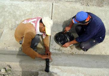 Keywords: Rebuilt irrigation canals flow fresh water to Taji farms DVIDS93455.jpg en A pair of local contractors put tar in the cracks of an irrigation canal which stretches for miles to service the many farms south of the city of Taji which is located northwest of Baghdad June 4 These contractors were hired by the 2nd Squadron 14th Cavalry Regiment Strykehorse 2nd Stryker Brigade Combat Team Warrior 25th Infantry Division Multi-National Division “ Baghdad to improve the infrastructure of the area which will become the foundation of an improved economy for the city U S Army photo/Capt Ronnie Geronimo 2008-06-04 https //www dvidshub net/image/93455 93455 2008-06-09 15 05 TAJI IQ PD-USGov 25th Infantry Division United States Images from DoD uploaded by Fæ |