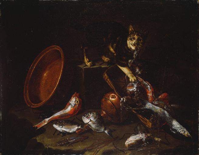 Keywords: Recco.Cat.stealing.fish.jpg en Guiseppe Recco 1634-1695 A Cat Stealing Fish Oil on canvas; 38 x 50 1/2 in 96 5 x 128 3 cm http //www metmuseum org/toah/hd/sstl/ho_71 17 htm Giuseppe Recco 1634 “1695 century 17 PD-Old Italian Baroque paintings in the Metropolitan Museum of Art Theft |