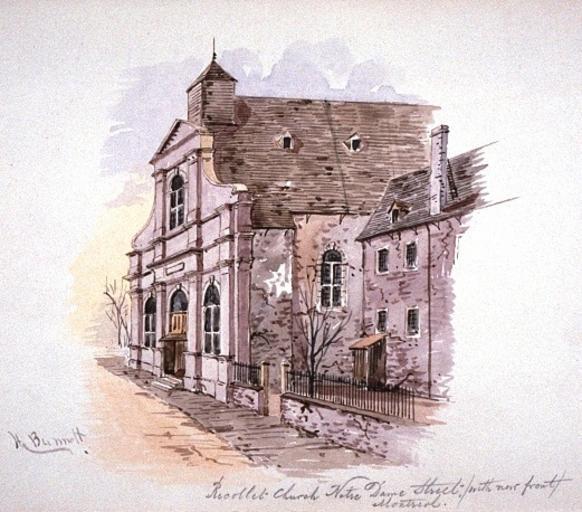 | Keywords: Recollet Church, Notre-Dame Street - with new front, Montreal.jpg en Painting Recollet Church Notre-Dame Street - with new front Montreal Henry Richard S Bunnett About 1888 Watercolour on paper 17 9 x 25 6 cm fr Peinture Église des Récollets rue Notre-Dame avec la nouvelle façade Montréal Henry Richard S Bunnett Vers 1888 Aquarelle sur papier 17 9 x 25 6 cm<br> « Les travaux de démolition de la vieille église Notre-Dame débutent en mai 1830 La façade de pierre est démontée et transportée au monastère des Récollets où elle y ornera l'église jusqu'à sa démolition en 1867 » “ http //www archeologie qc ca/passee_notredame_fr php menu 3 archeologie qc ca M978 71 34 1888 Henry Richard S Bunnett PD-old-100 Churches in Montreal Notre-Dame Street Montreal Montreal in the 1880s Recollets monasteries Henry Richard S Bunnett |