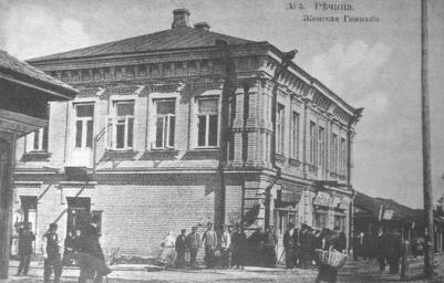| Keywords: Rečyca, Prabojnaja-Školny. Рэчыца, Прабойная-Школьны (1910).jpg Рэчыца Rečyca ог вуліцы П абойнай vulica Prabojnaja і завулка Школьнага zavułak Školny Жаночая гімназія Целеш В Га ады Бела усі на ста ых паштоўках енск Бела усь 2001 author < 1914 PD-old-100 History of Rečyca |