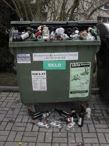 Keywords: Recyklace skla.JPG cs Přeplněný konteiner na tříděné sklo pak že o recyklaci Tepličáci nestojí own Safranek-interia eu 26 března 2014 Glass recycling Cc-zero