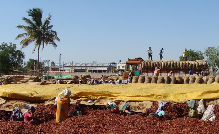 Keywords: red chilli wholesale market sorting transportation byadagi karnataka india