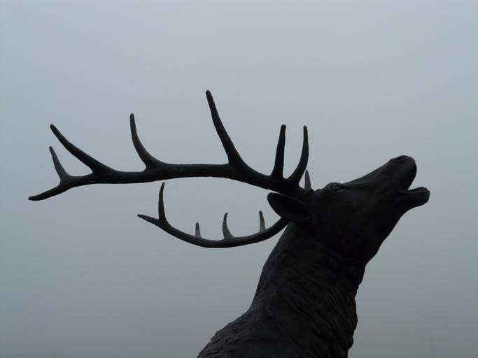 Keywords: red deer bronze statue hirsch cervidae antler carrier paarhufer artiodactyla cast iron antler pipe fog