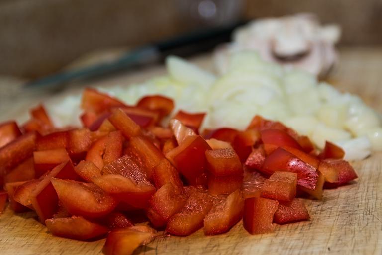 Keywords: red paprika organic broach vegetable green feeds dinner supper evening meal arumugam food hot meal healthy cut cutting ingredient fresh raw cutting board ui kitchen cooking