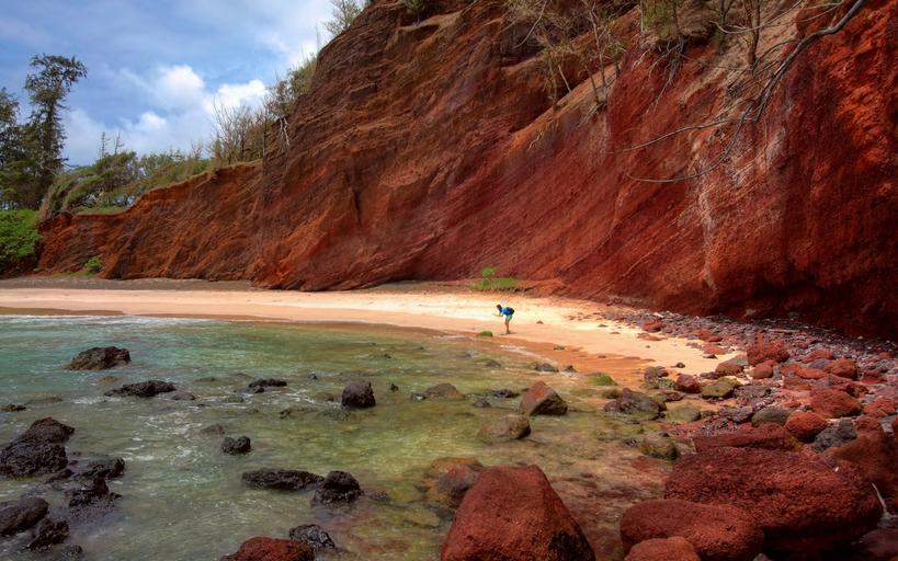 Keywords: red rocks cliff steep vertical layers water coast shore nature scenic geology formation stones beach bay