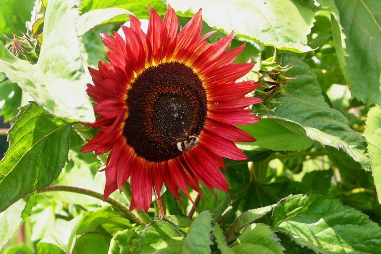 Keywords: red sunflower bumblebee bloom garden nature colorful