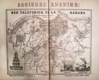 Keywords: Red Telefonica De La Habana 1895.jpg en An 1895 map of the first telephone network in Havana Cuba on display in the ETECSA Telephone Museum 2015-05-03 ETECSA Telephone Museum Cuban Telephone Company defunct other versions PD-old-70-1923 Uploaded with UploadWizard Telecommunications cable maps |