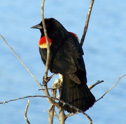Keywords: red winged blackbird bird fly wings feather wildlife beak wild freedom outdoor avian majestic creature wilderness nature mammal vertebrate animal
