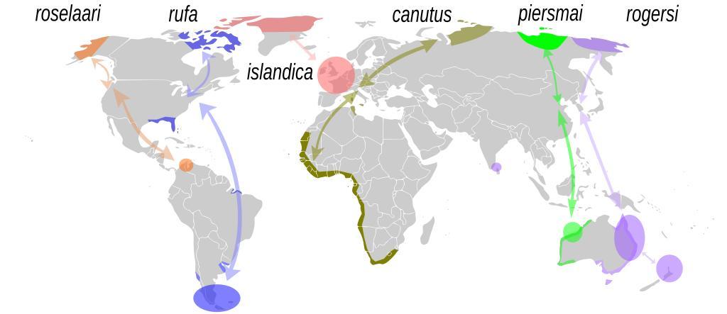 | Keywords: RedKnotMigration.svg en Migration of Red Knot subspecies based on information from Buehler D M Baker A J Piersma T 2006 Reconstructing palaeoflyways of the late Pleistocene and early Holocene Red Knot Calidris canutus Ardea 94 3 485 “498 own Shyamal 2009-05 Calidris canutus Charadriiformes distribution maps |