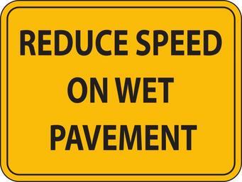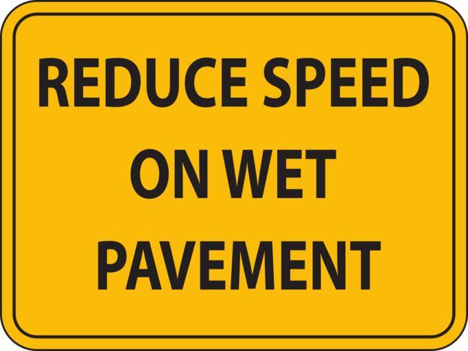 Keywords: reduce speed wet pavement sign signage warning caution limit traffic safety